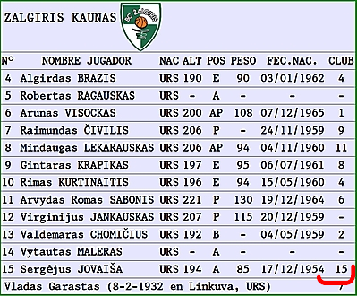 KAUNAS COPA EUROPA 1985-1986 ZALGIRIS