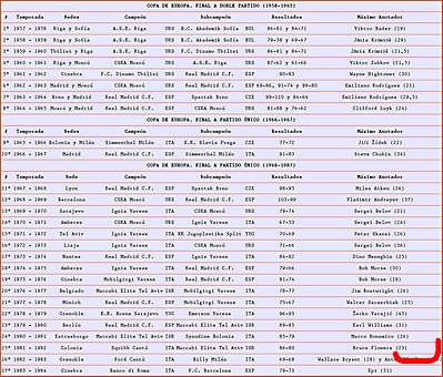 COPA DE EUROPA 1984-1985 PALMARES